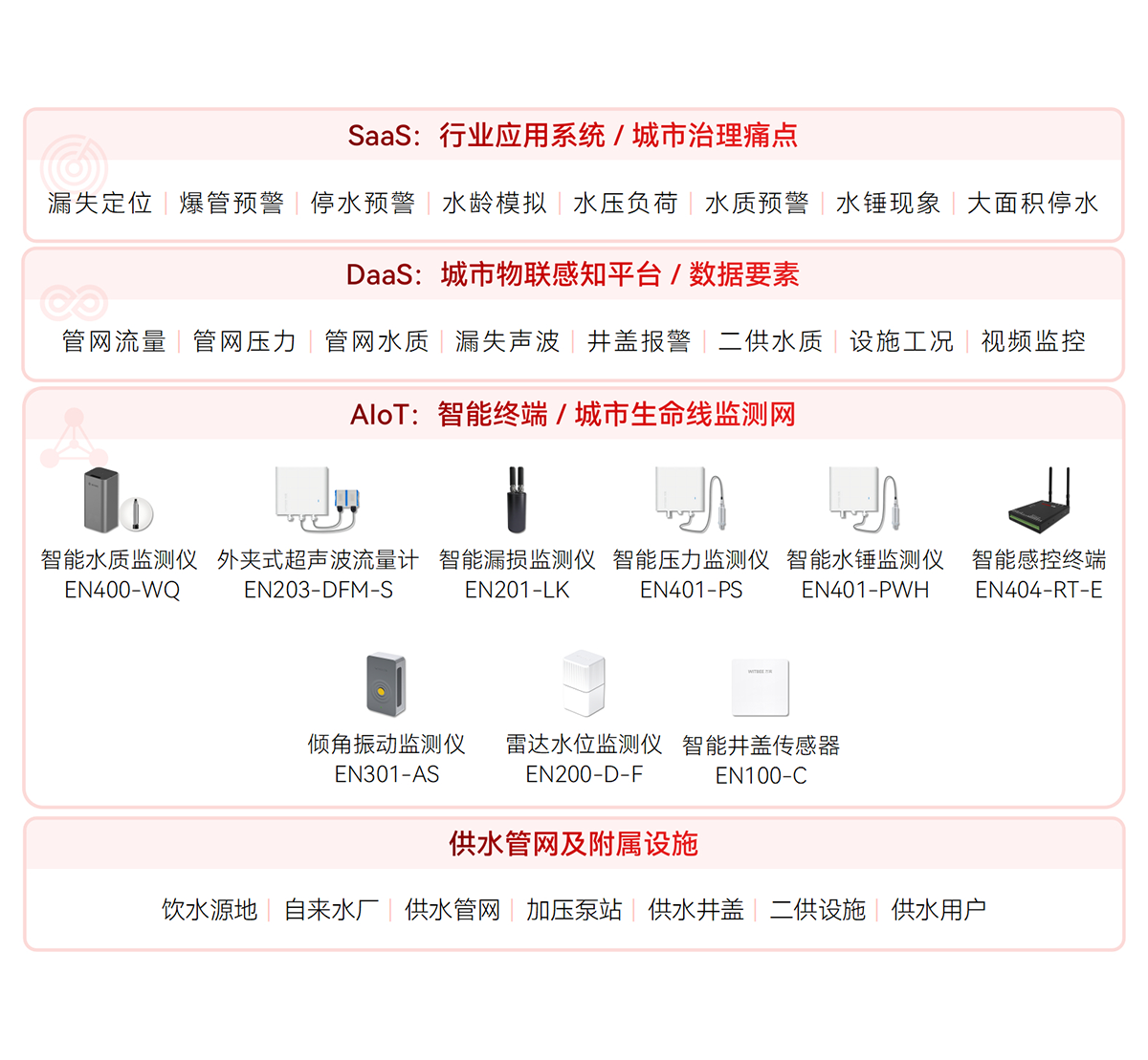 對(duì)供水管網(wǎng)設(shè)施及水質(zhì)提供實(shí)時(shí)監(jiān)測(cè),通過各類智能監(jiān)測(cè)終端保障供水壓力平衡、流量穩(wěn)定和供水安全,及時(shí)發(fā)現(xiàn)爆管并預(yù)警,避免大面積城市停水事故發(fā)生,為管網(wǎng)爆管預(yù)警分析、用水趨勢(shì)分析和泄漏量預(yù)警分析提供數(shù)據(jù)支撐。