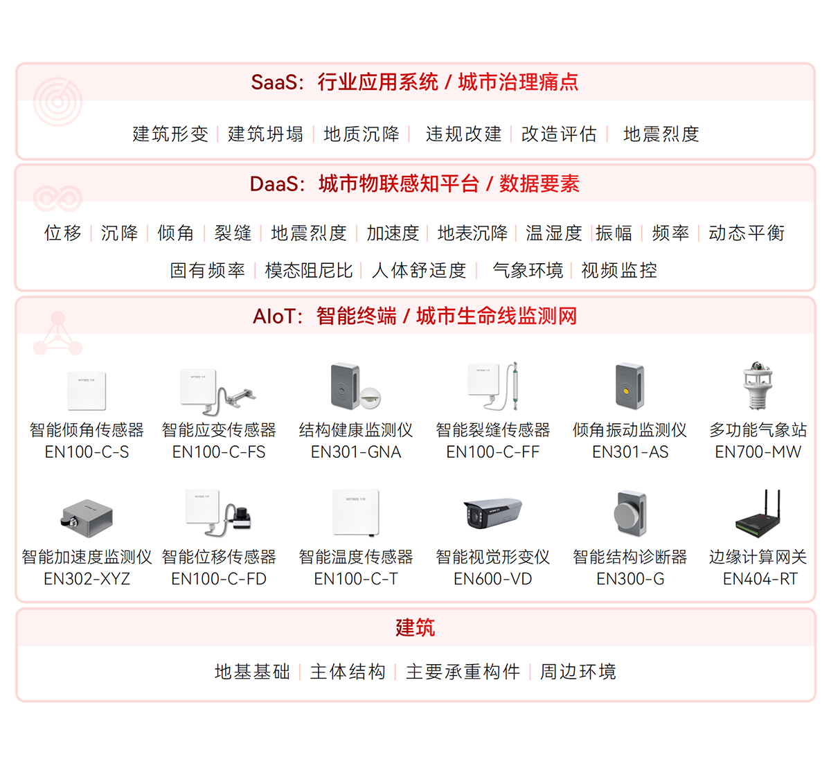 實(shí)時(shí)監(jiān)控建筑結(jié)構(gòu)健康狀態(tài),通過位移、沉降、傾斜、溫濕度、裂縫和動(dòng)態(tài)平衡、自振頻率的數(shù)據(jù)收集分析,對(duì)潛在災(zāi)害進(jìn)行提前預(yù)警,對(duì)突發(fā)事件應(yīng)急報(bào)警,為結(jié)構(gòu)坍塌監(jiān)測(cè)預(yù)警分析和滑坡監(jiān)測(cè)預(yù)警分析提供數(shù)據(jù)支撐,實(shí)現(xiàn)對(duì)建筑健康狀態(tài)的實(shí)時(shí)評(píng)估。